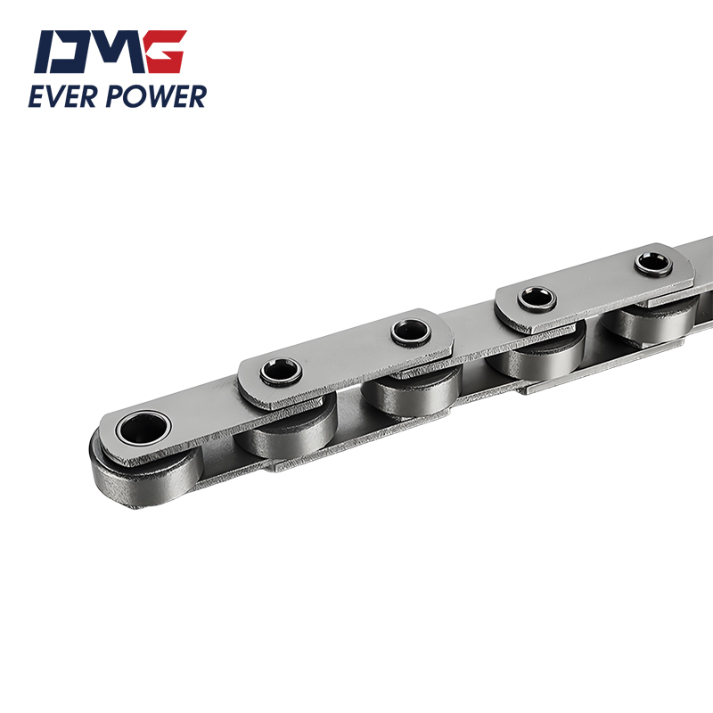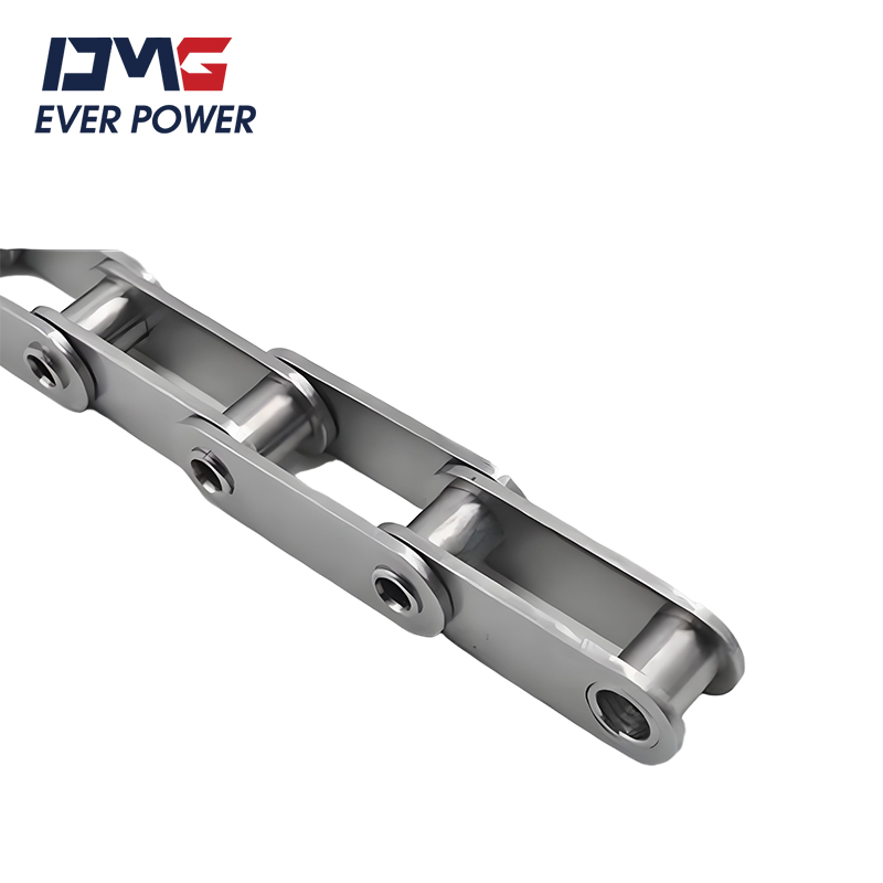 Hollow pin shaft chain is relative to solid pin shaft chain. According to different usage occasions, various types of accessories, such as accessory shafts, cross bars, etc., are installed in the hollow pin shaft of the chain to realize material lifting and transportation. The main products include short pitch hollow pin shaft conveyor chain, double pitch hollow pin shaft conveyor chain, non-standard hollow pin shaft conveyor chain, etc.; ● Adopting high-quality materials and advanced processing technology, the product has the characteristics of stable transportation and high synchronization.